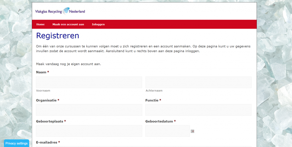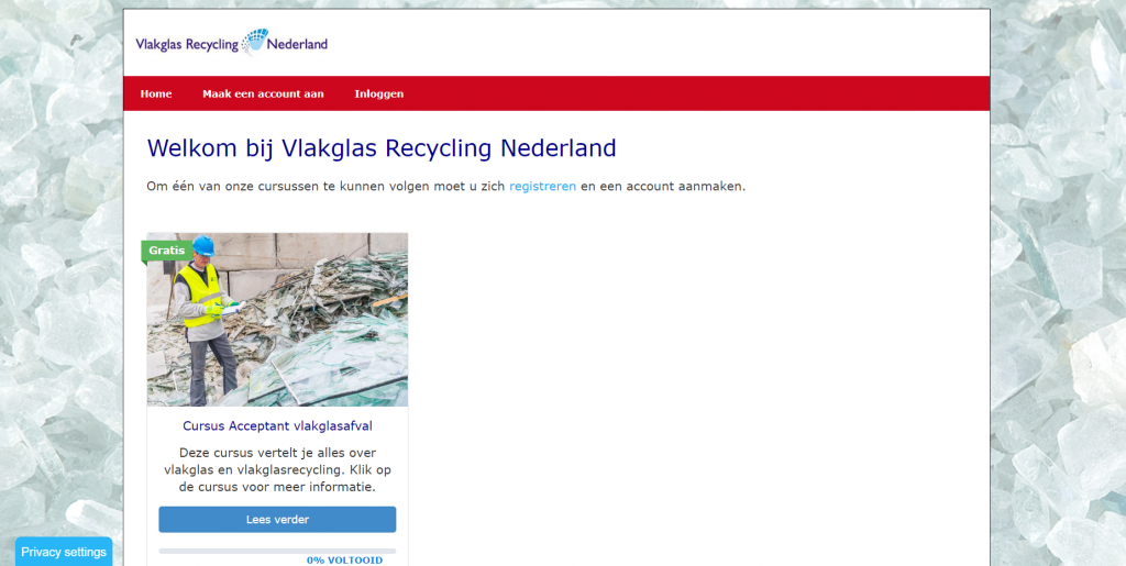 Om de cursus Acceptant Vlakglas te kunnen volgen moeten eerst een paar stappen worden gezet. De cursus is te vinden op internet via de link: https://cursus.vlakglasrecycling.nl/